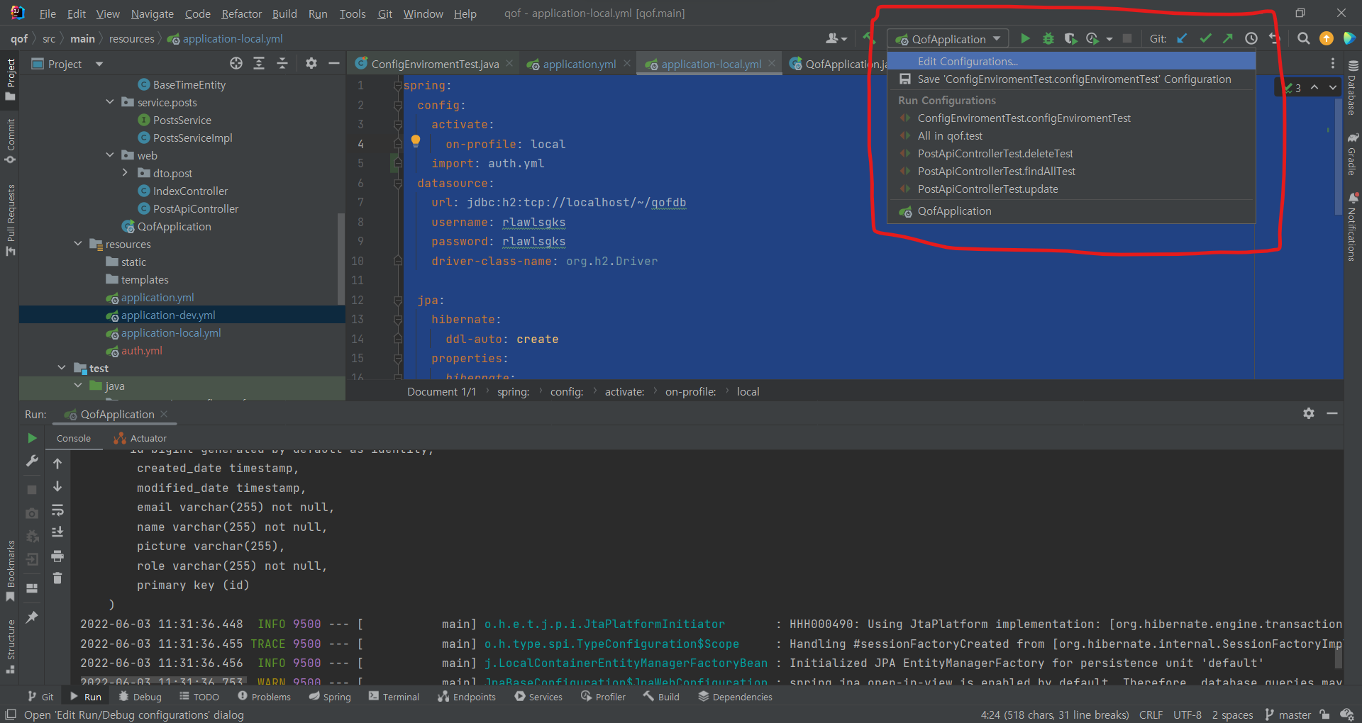 각 파일에서 spring.config.activate.on-profile 이라는 옵션을 설정해주고 설정이름을 원하는대로 넣어주자,
